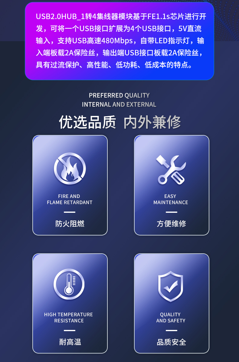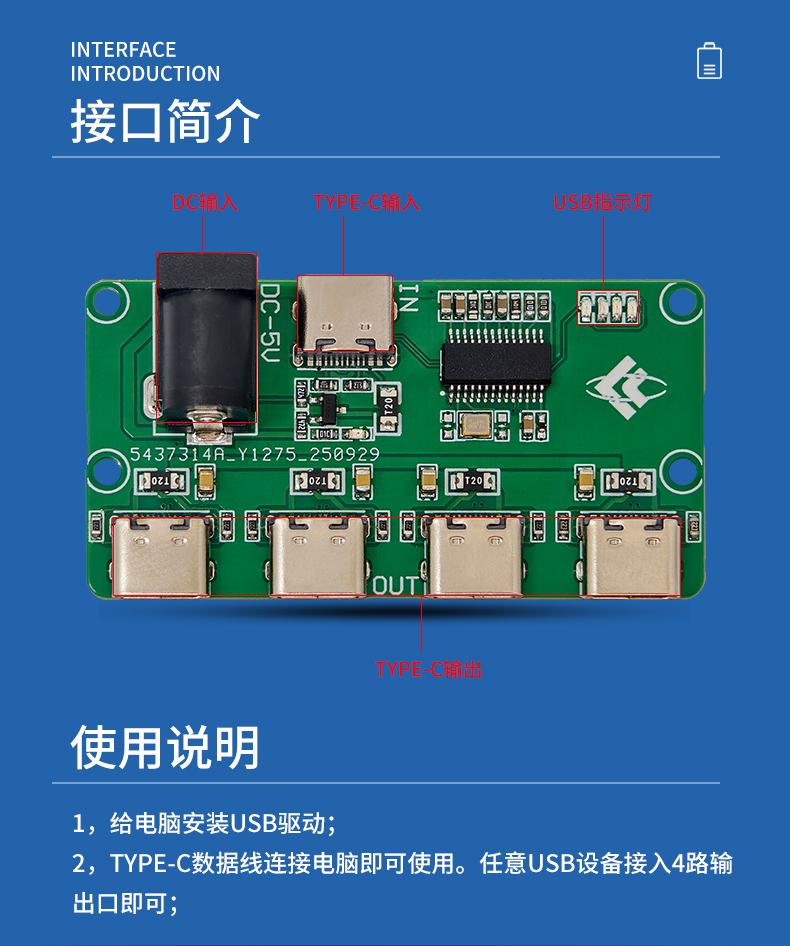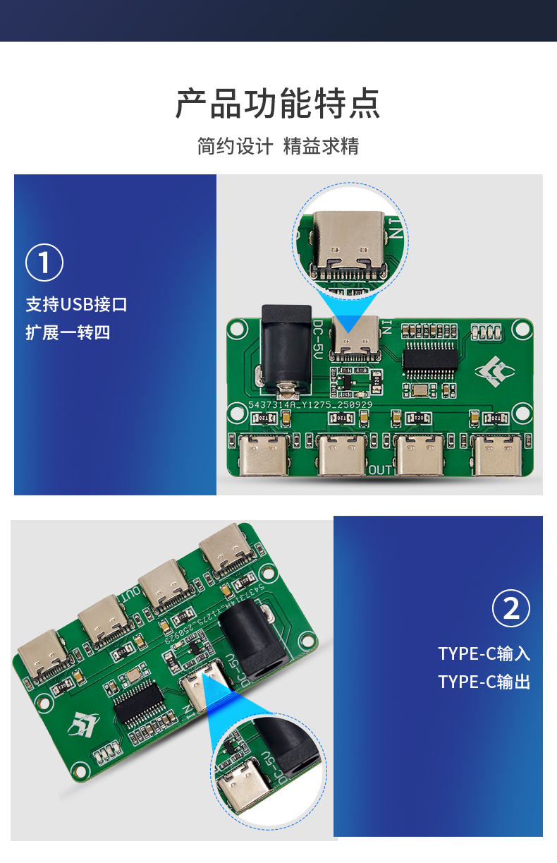 USB2.0HUB模块 1转4口 TYPE-C输入 TYPE-C输出