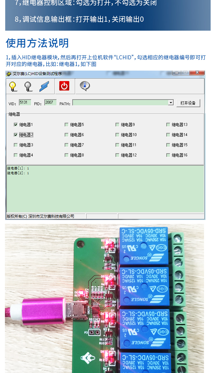 艾尔赛HID四路USB继电器模块