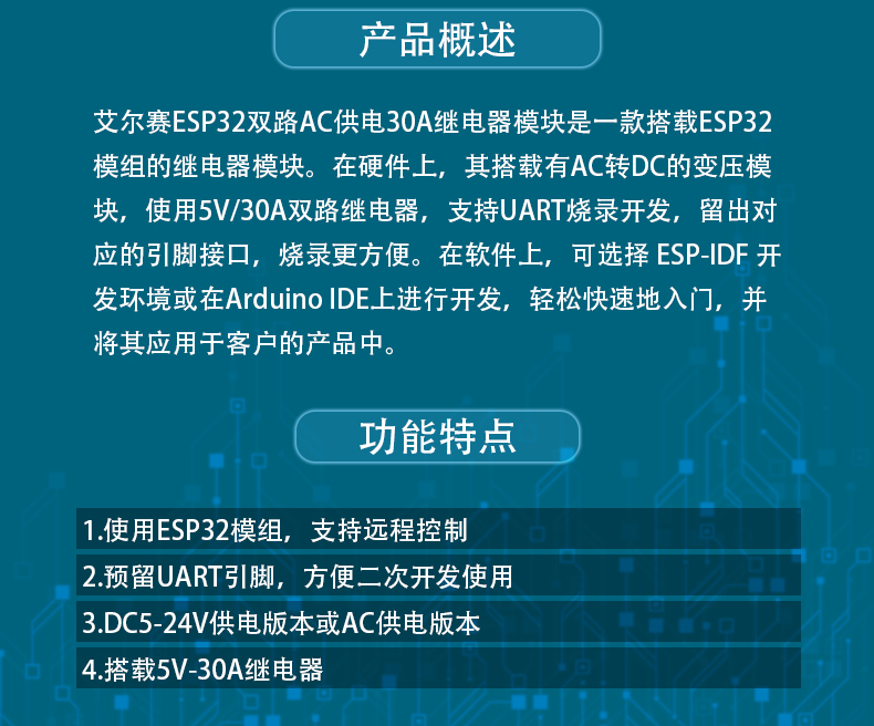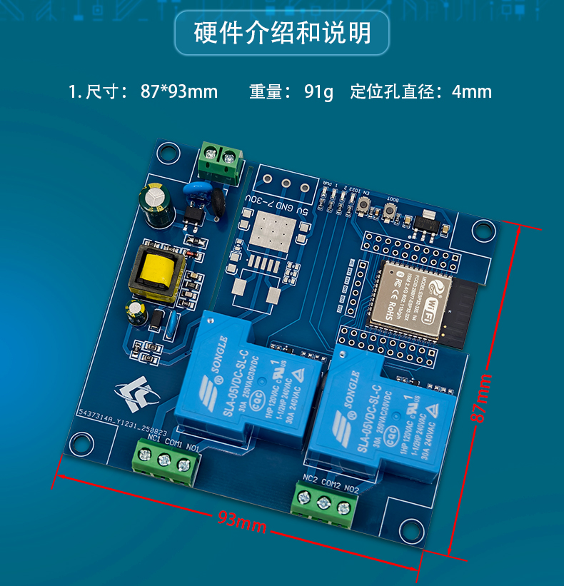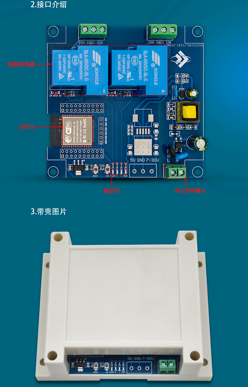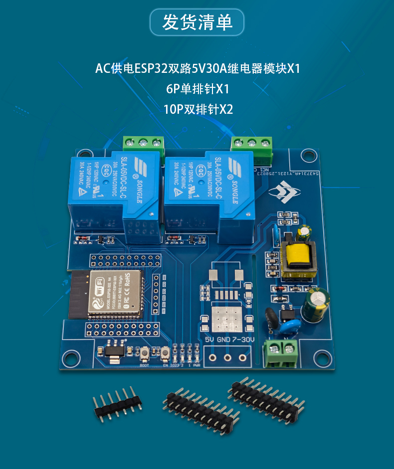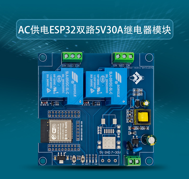 ESP32 双路 30A继电器模块 蓝牙WiFi开发板 AC220V供电