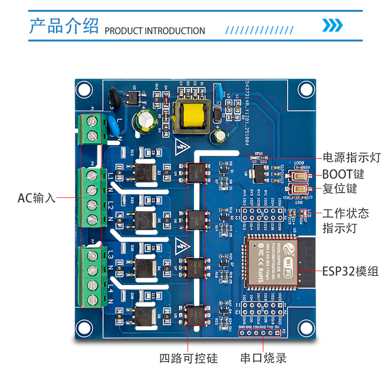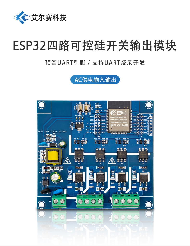 ESP32四路 BT137S可控硅开关输出模块 开发板 AC供电