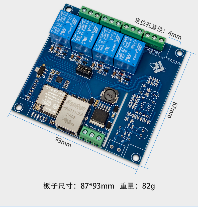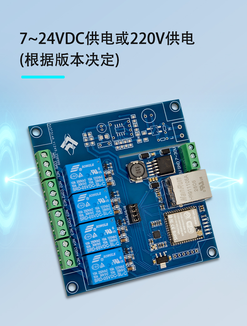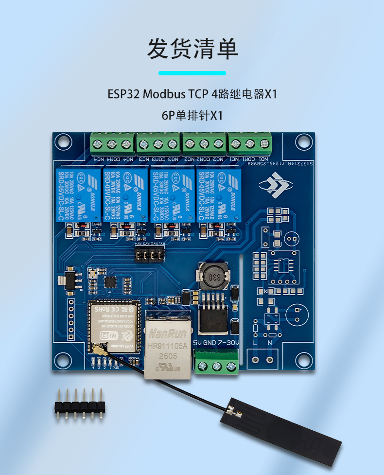 ESP32 Modbus TCP 四路继电器模块 有线/WIFI 开发板 7-24V供电