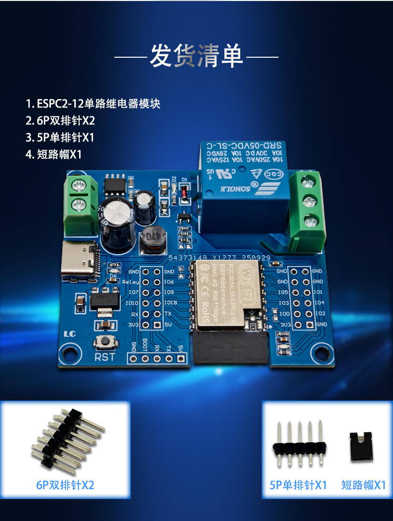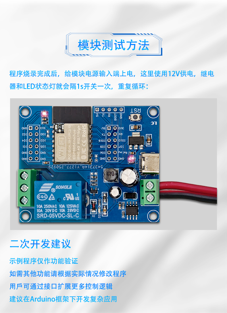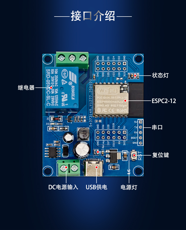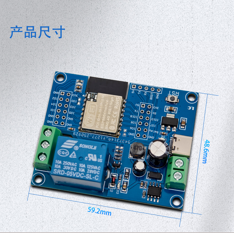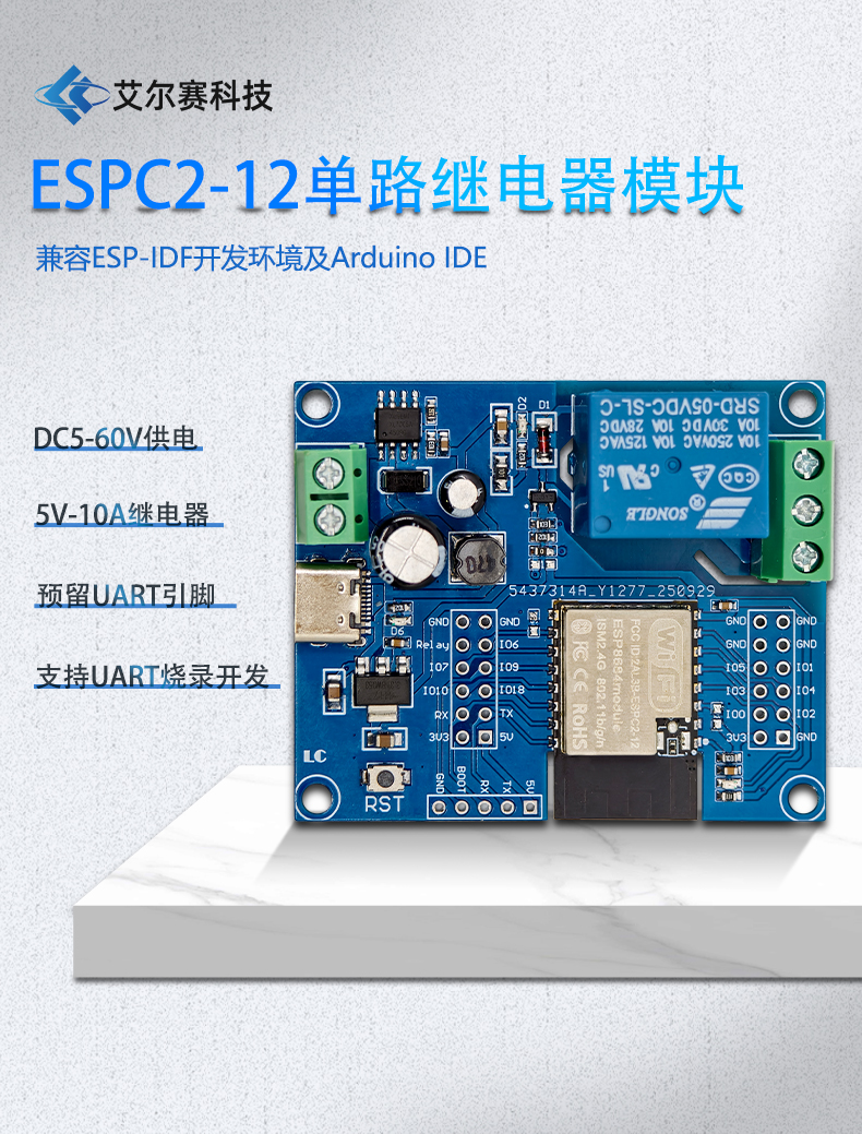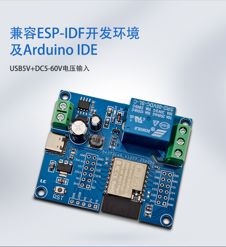 ESPC2-12单路继电器模块 开发板DC5-60V供电