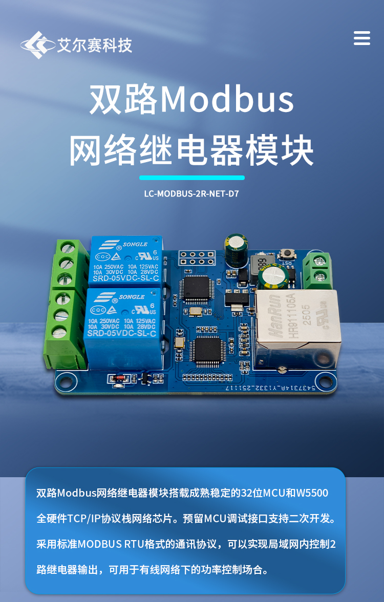 Modbus RTU 双路网络继电器模块 有线以太网 局域网控制 2路输出