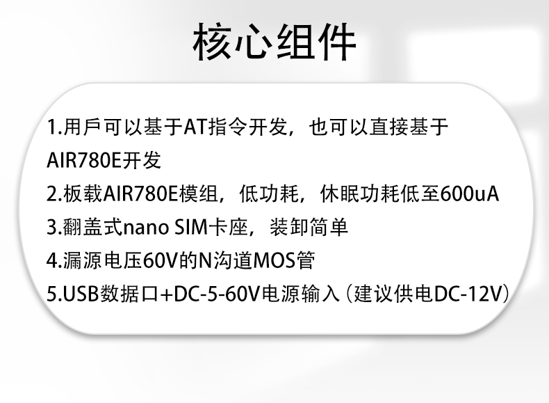 4G联网AIR780E单路MOS开关模块 开发板 DC5-60V供电