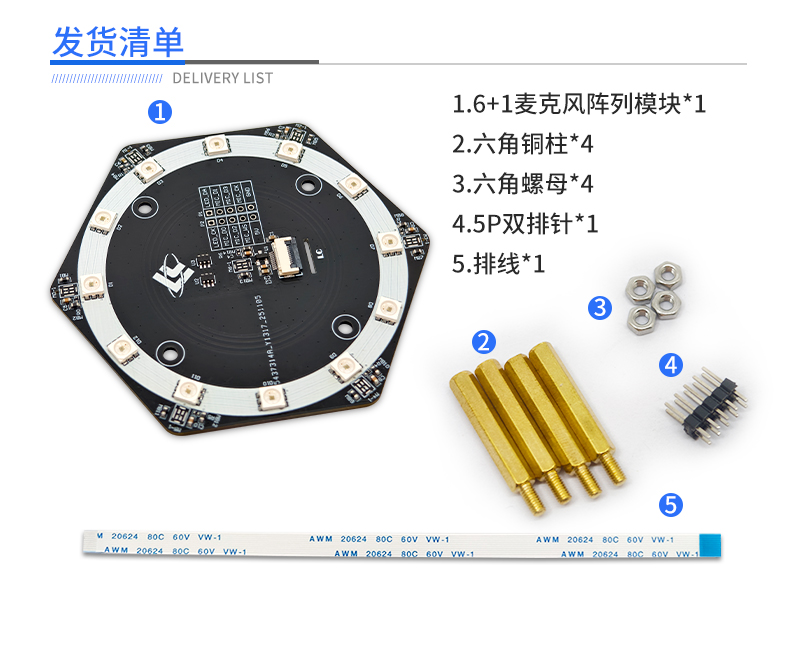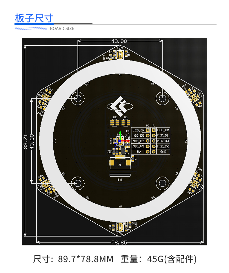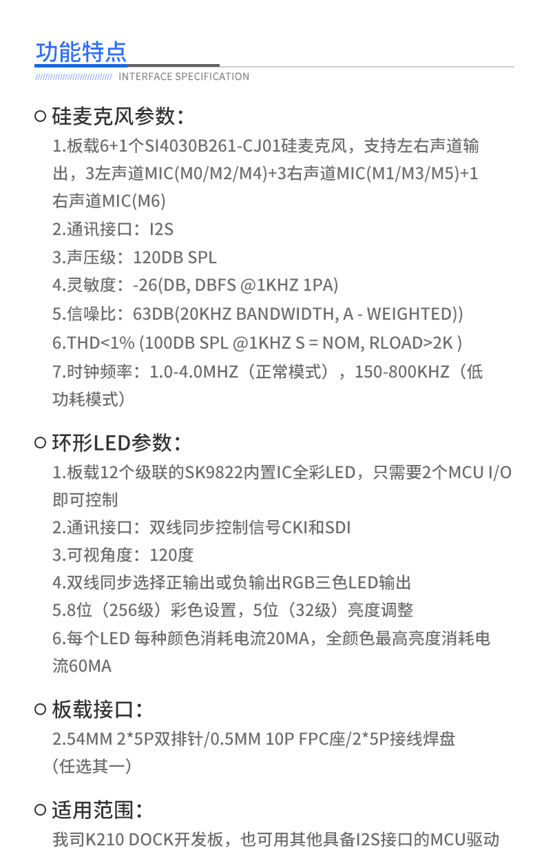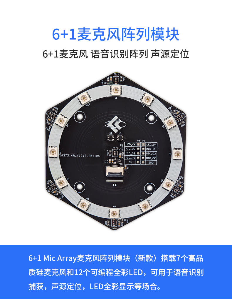 6+1麦克风 语音识别阵列 I2S接口 声源定位 K210开发板配件