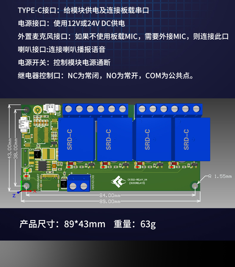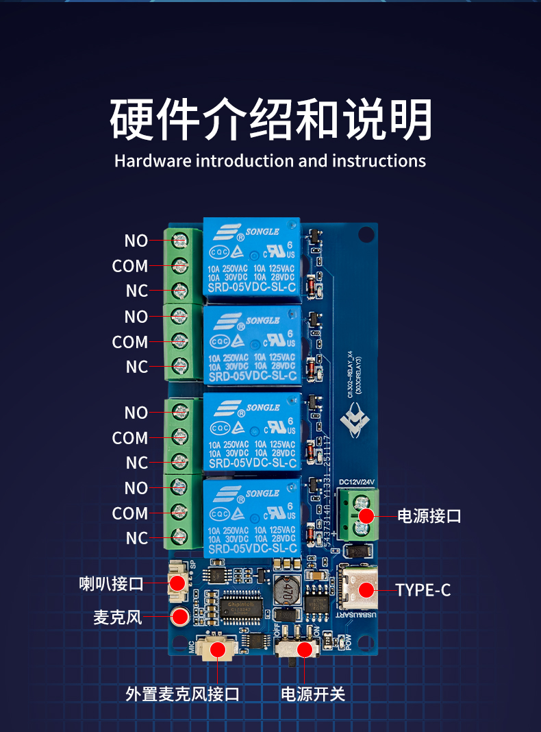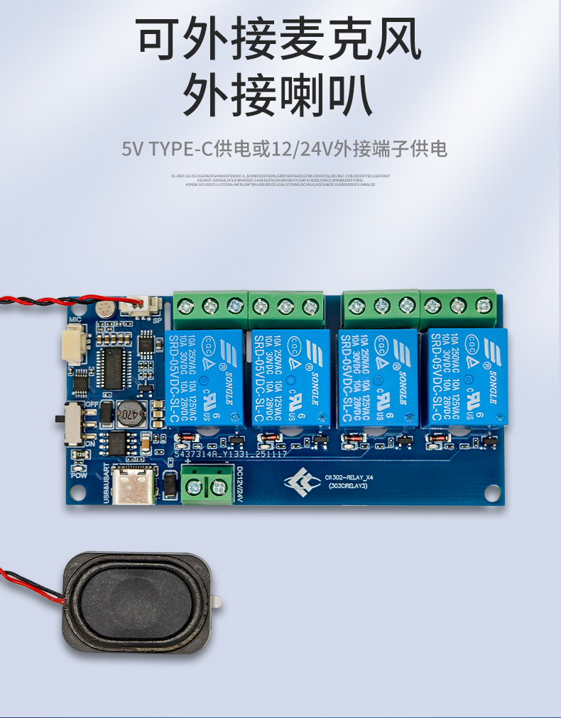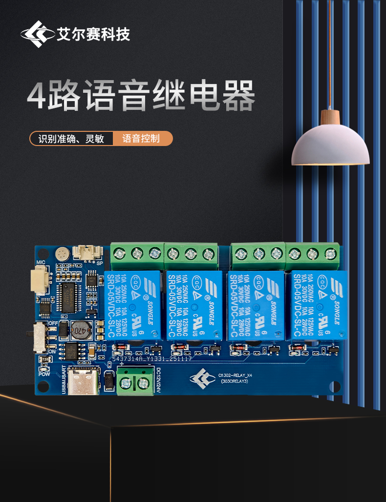 CI1302 4路AI语音继电器模块 离线语音控制开关智能遥控二次开发