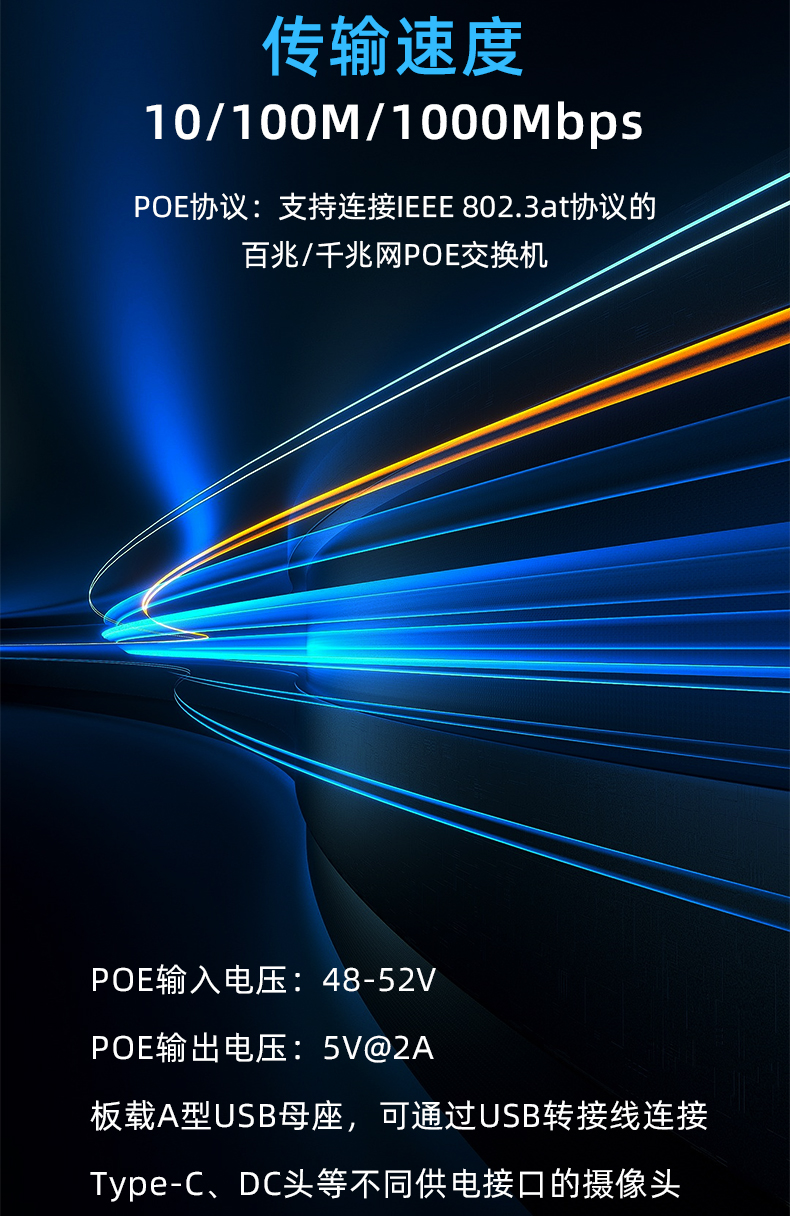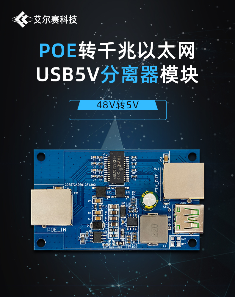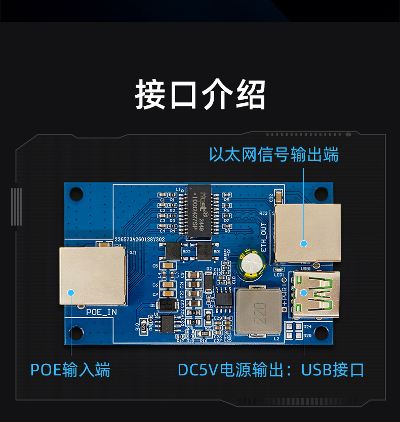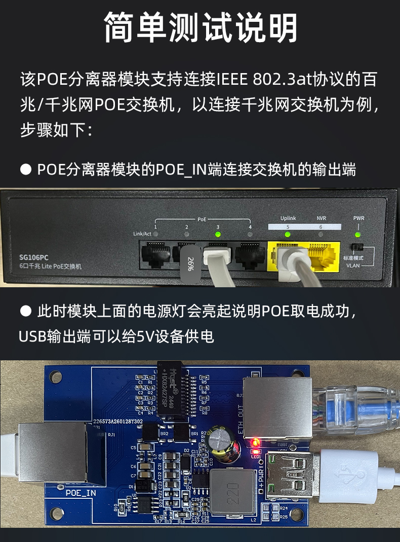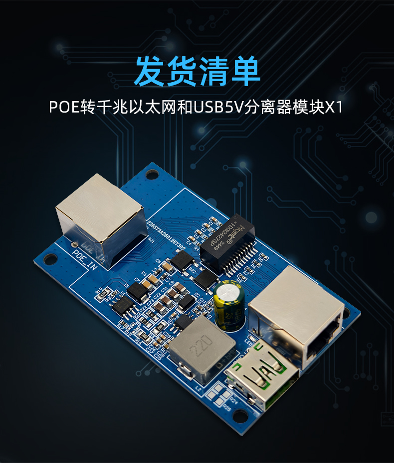 POE转千兆以太网和USB5V分离器模块 一线通POE供电器