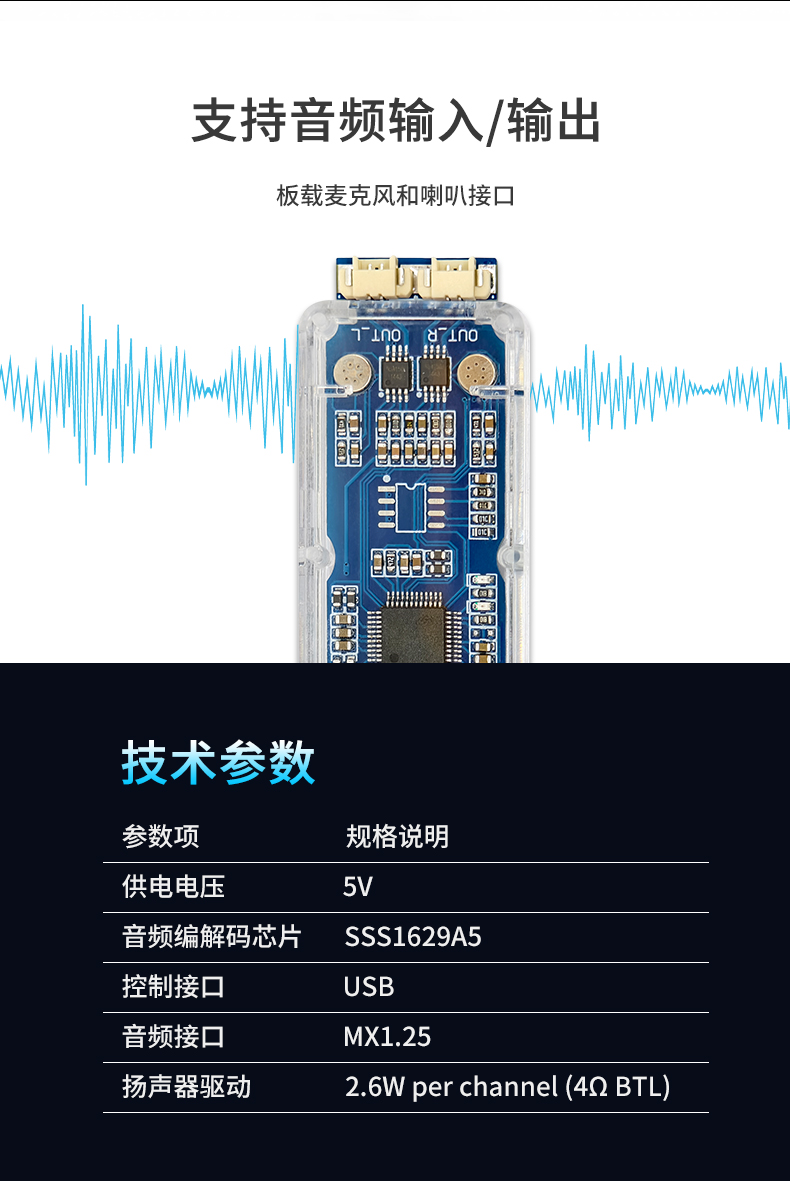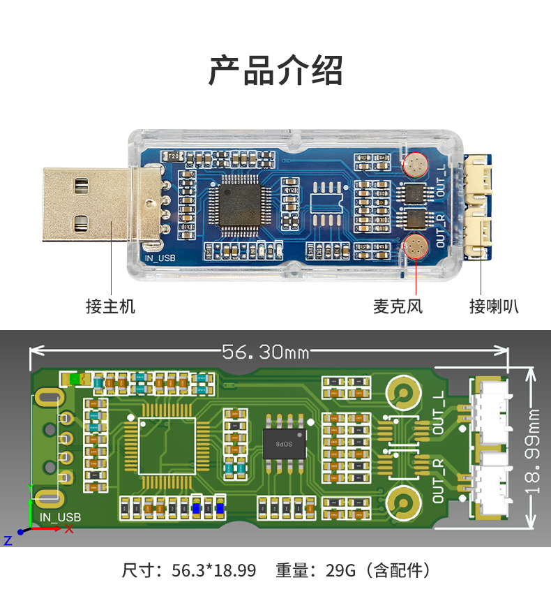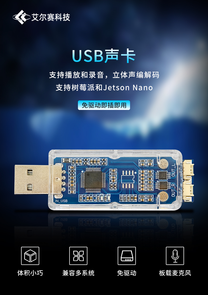 免驱USB声卡 SSS1629A5 USB声卡模块 树莓派和Jetson可用